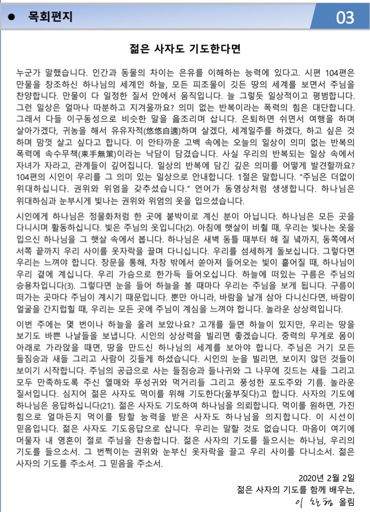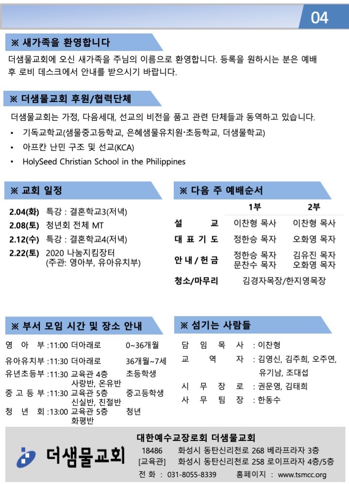 20.02.02 더샘물교회 주보 이 글 공유하기:Click to share on Twitter (새 창에서 열림)페이스북에 공유하려면 클릭하세요. (새 창에서 열림)이것이 좋아요:좋아하기 가져오는 중... 관련 관리자2020-02-01T16:00:14+09:00 관련 글 25.10.26 더샘물교회 주보 25.10.26 더샘물교회 주보 10월 25th, 2025 25.10.19 더샘물교회 주보 25.10.19 더샘물교회 주보 10월 17th, 2025 25.10.12 더샘물교회 주보 25.10.12 더샘물교회 주보 10월 10th, 2025 25.10.5 더샘물교회 주보 25.10.5 더샘물교회 주보 10월 3rd, 2025 25.9.28 더샘물교회 주보 25.9.28 더샘물교회 주보 9월 26th, 2025